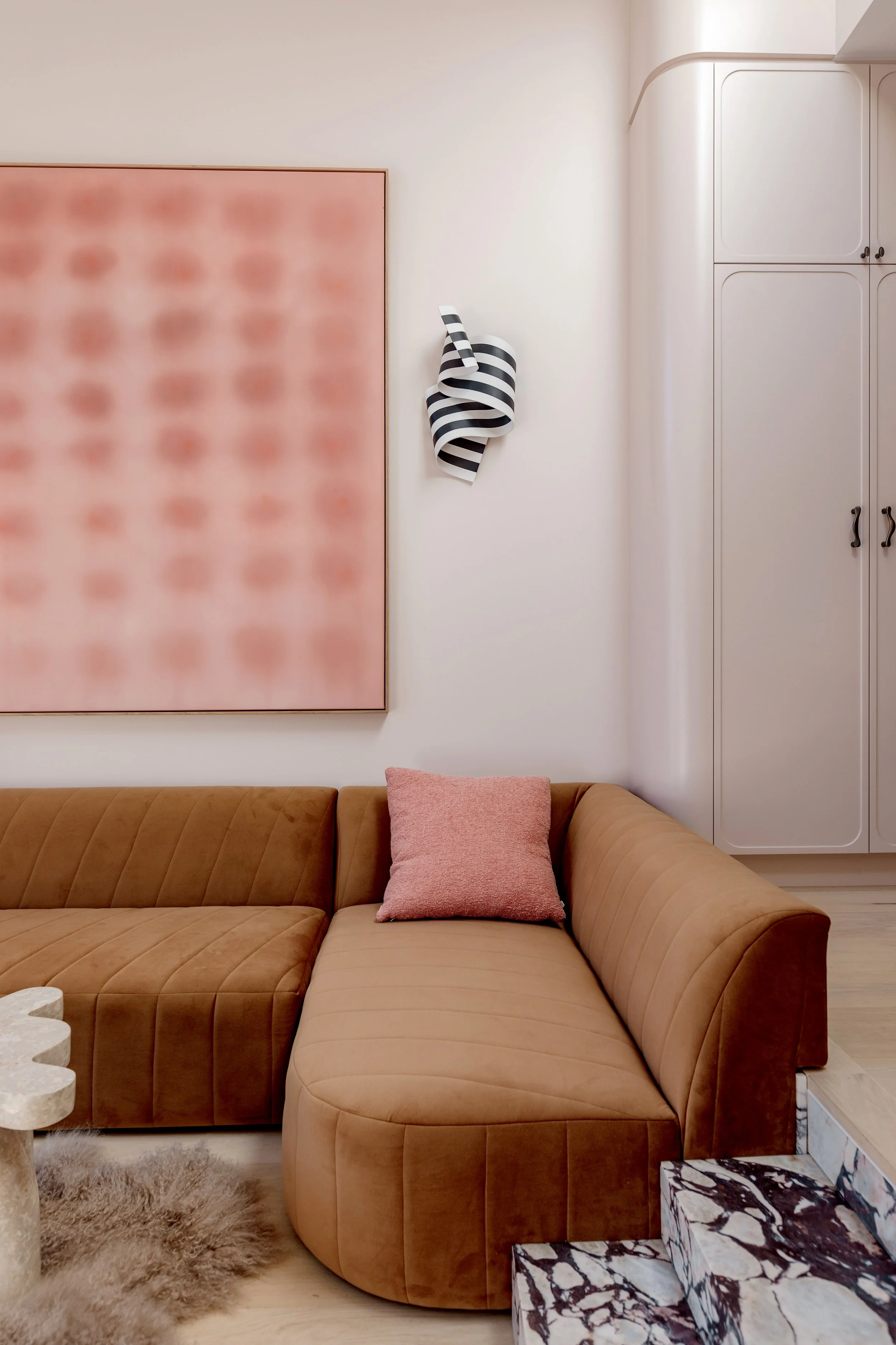 Dolly was a dream come true, a real life mini pink palace, drenched in colour, art, lighting and furnishings. The kitchen was a study in balance and proportions to meet the needs of this young family. Curating the art collection was our jumping off point and directed the language of the home.